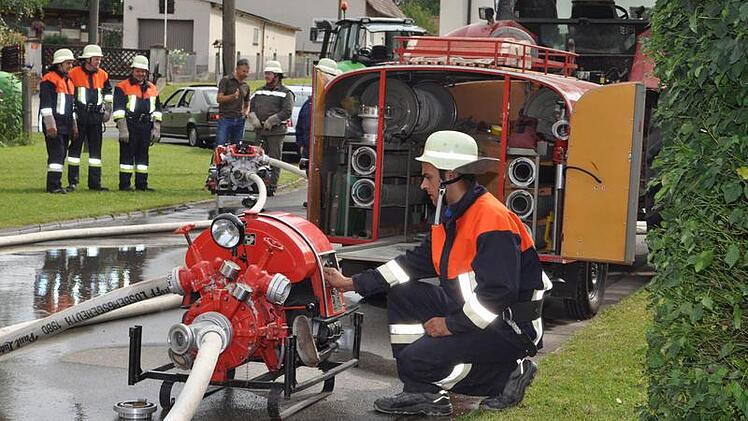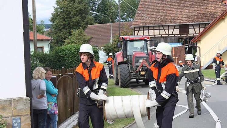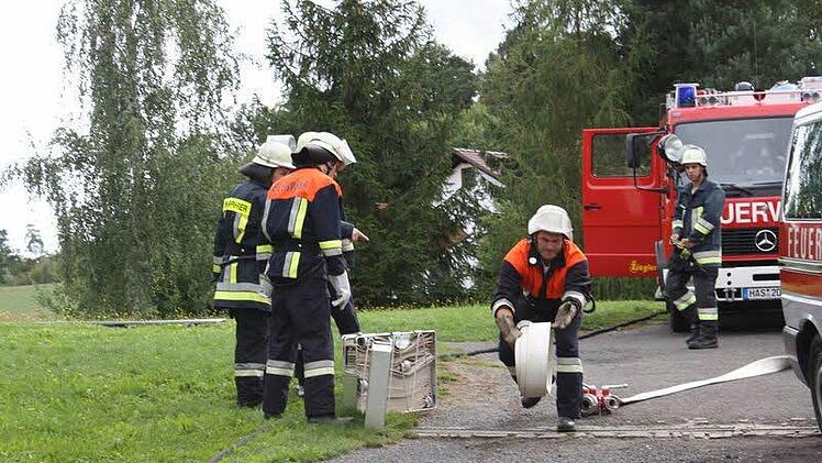 Die übrigen Wehren - Sendel-bach-Gräfenholz, Salmsdorf, Treinfeld und Losbergsgereuth-Ottneueses, verlegten die beiden Förderleitungen vom Weiher des Gutshofes aus. Aufgrund der Trockenheit hatte man bewusst nicht das Wasser aus dem Leitungsnetz genommen. Insgesamt waren etwa 60 Wehrleute mit dabei. Bürgermeister Willi Sendelbeck und der Kommandant der gastgebenden Wehr, Roland Hauck, dankten den Aktiven für ihre Teilnahme und ihr gemeinsames Engagement im Dienst für den Nächsten.