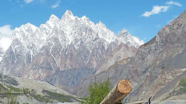 Beim ersten Abschnitt der Reise auf dem KKH mit dem Kunjerab-Pass bestaunte Manfred Wagner das hierzulande kaum bekannte Hunzatal. am Oberlauf des Indus auf dem KKH kam er sich wie ein Zwerg vor: beiderseits eingeklemmt von Tausende Meter hochragenden, schneebedeckten Bergriesen.