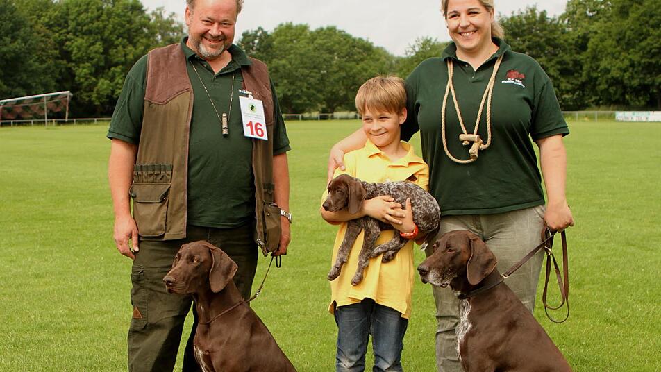 Schon lange auf die Jagd geht Wolfgang Nieschlag aus Steinsfeld und deswegen hat er Hunde. "Aber ich bin heute das erste Mal auf einer solchen Zuchtschau mit meinem ,Titan vom Nonnenhaus', einem Braun-Schimmel-Rüden." Der Steins-felder will das Tier für die Zucht nutzen, "wenn es die Voraussetzungen und Leistungen bringt. Man braucht ja die Prüfungen."