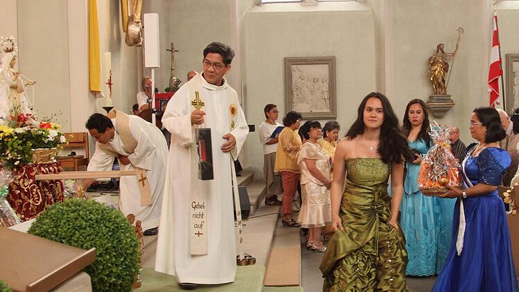 Beim Festgottesdienst war die große Stadtpfarrkirche gut gefüllt, denn mit den Filipinos feierten auch viele Eltmanner und Gäste aus der näheren Umgebung. Sie erlebten dabei, mit welcher Freude und Begeisterung die Filipinos auch einen solchen Gottesdienst feiern.