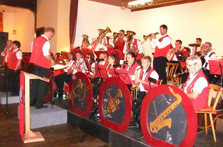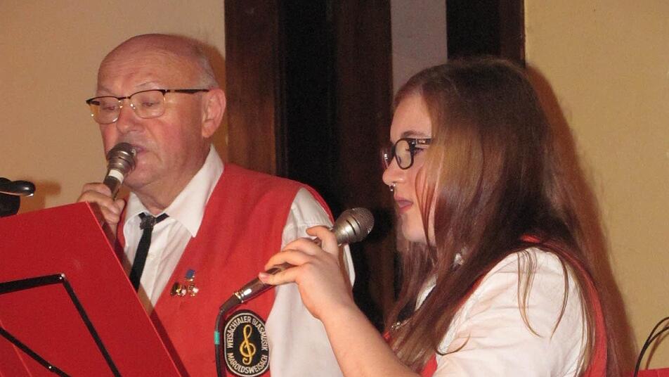 Vorsitzender Stefan Hofmann freute sich, in einen voll besetzten Saal blicken zu können, und dann ging es schon mit dem "Gruß aus Böhmen" von Ernst Mosch los. Nicht nur Worte zur Begrüßung, sondern auch eine musikalische Begrüßung, "Grüß Gott Freunde", entbot die Blasmusik mit den Sängern Katja Meißner und Willi Hohmann.