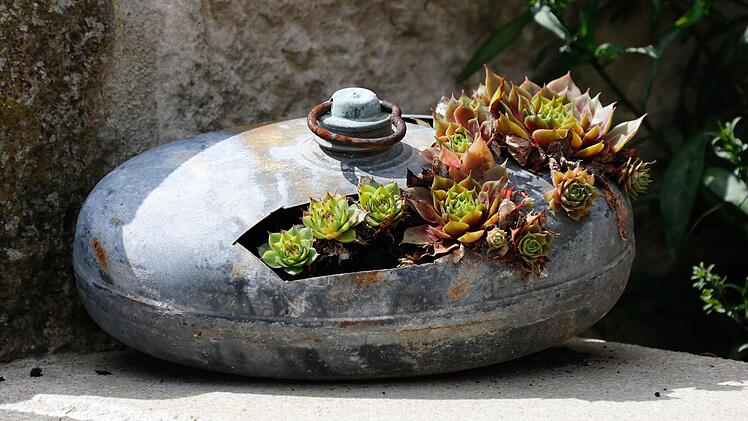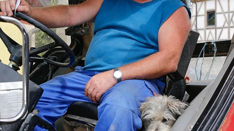 Was tun? Wir entscheiden uns für einen Fußmarsch Richtung Kirche und Ortsmitte. Auch im Gotteshaus findet sich niemand. War ja fast zu erwarten. Also weiter Richtung Ortsmitte, quer durch den direkt neben der Kirche befindlichen Friedhof. Etwas fällt auf - die Breitbrunner pflegen die Vorgärten ihrer Häuser. Da finden sich dekorativ umgerüstete früher Milchkannen, ebenso wie bunte, auf umgekehrte Tonblumentöpfe montierte Metallhähne. Alles schön und gut, aber wo bleiben die Breitenbrunner? Nach einer halben Stunde finden wir zwei ins Gespräch vertiefte Männer, genau in der Ortsmitte. Hartmut sitzt auf seinem Traktor und unterhält sich mit seinem Schwager Georg. Die beiden haben es eilig, der Hartmut muss heim, es gibt Kotelett zum Mittagessen. Wir halten ihn noch ein wenig auf. Wollen wissen, was er außer Traktorfahren noch so treibt. Landwirt im Nebenerwerb sei er, und die Frau hält sich Pferde, rein hobbymäßig.