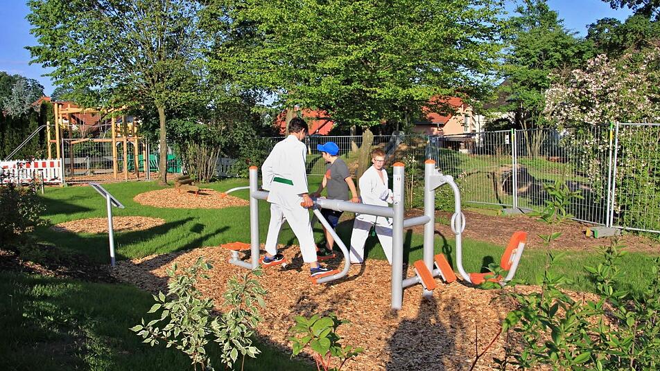 worden waren. Der Spielplatz mit einem neuen Klettergerüst ist Anlaufstelle für die Kinder, aber auch das Fitnessgerät für Senioren fällt ins Auge. "Kinder waren beim Bemalen von Gegenständen voll bei der Sache", freute sich Sandra Schramm. Die Entwicklung des Schulgartens sah Siegfried Kirchner mit Hochbeeten und einer Sitzecke positiv. "Da half unsere Feuerwehr tatkräftig mit", sagte der Zweite Bürgermeister.