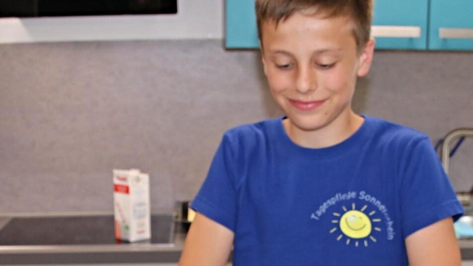 Bei der Tagespflege "Sonnenschein" in Ebern arbeitete am Montag von sieben bis 15 Uhr Simon Müller aus Baunach. Er ist damit beschäftigt, einen Kuchen im Backblech herzurichten. Dabei schauen ihm die Fachkraft Marianne Krug und ihre Kollegin Barbara Graumann über die Schulter, geben Tipps und erläutern ihm diese Arbeit. Simon ist zwölf Jahre alt und besucht die Klasse 5a der Realschule in Ebern.