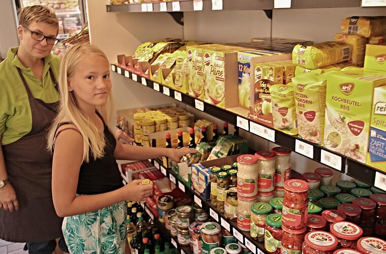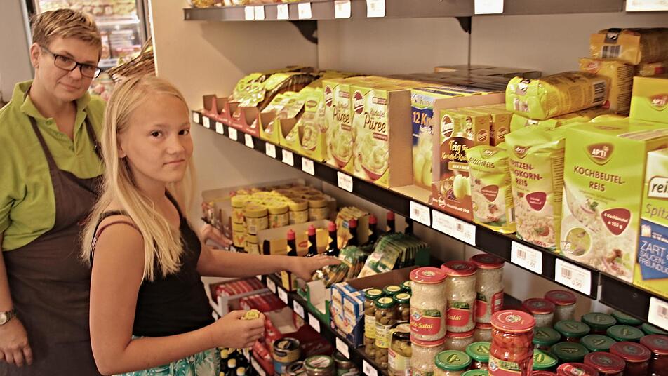 Lisa arbeitet im Dorfladen ihres Heimatortes in Burgpreppach. Diesen habe sie ausgewählt, weil es ihn noch nicht so lange gibt. "Ich wollte mal sehen, was hier so abläuft." Lisa ist damit beschäftigt, Waren im Regal zu sortieren, nachdem sie von der dortigen Mitarbeiterin Carmen Bernard entsprechend eingewiesen wurde. "Ich muss die Waren nach vorne rücken und auch auf das Verfallsdatum achten", erklärt Lisa ihre momentane Arbeit am frühen Montagmorgen kurz nach Ladenöffnung. Sie hofft, auch durch ihren Einsatz mitzuhelfen, ärmere Kinder zu unterstützen. "Ach ja, es ist auch ganz interessant so nebenbei mitzubekommen, welche Leute kommen, wie sie einkaufen und von dem Personal hier bedient werden", sagt Lisa.