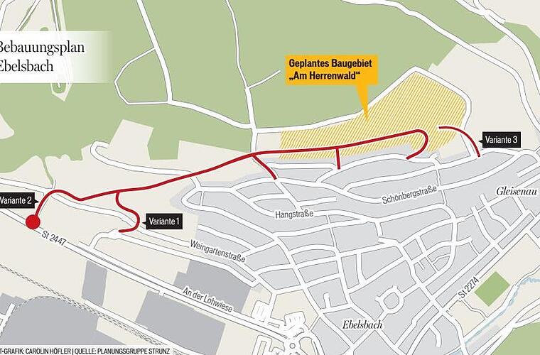 Für die Aufstellung eines Bebauungsplanes "Am Herrenwald" über Ebelsbach hatten die Vertreter des Ingenieurbüros Strunz die Eckpunkte abgesteckt, wie die Flächen mit den Versorgungsanlagen erschlossen und wie auch die günstigste verkehrsmäßige Anbindung erfolgen könnte. "Knackpunkt" ist dabei auch eine Starkstrom-Freileitung, die zur Ausnutzung des Baugebietes verlegt werden müsste. Das ist bekanntlich nicht billig, denn die Verlegung der Freileitung an den Waldrand sei bei ersten Kostenschätzungen mit einer Million Euro angegeben. Eleganter wäre natürlich die Verlegung des Kabels auf einem Anwandweg ins Erdreich, was mit einer aufwendigeren Technik und mit Kosten von circa 1,9 Millionen Euro erfolgen könnte.