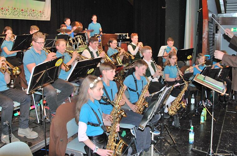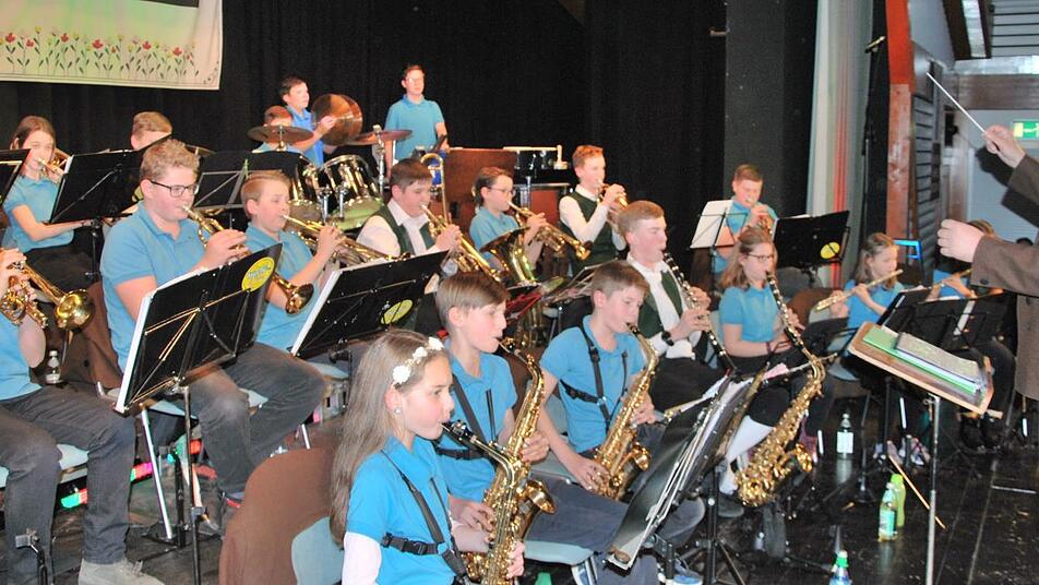 Seit drei Jahren spielen die "Harmonie Kids" und das Jugendorchester der Stadtkapelle Eltmann zusammen als "Mir spieln zamm". Die 25 begeisterten Nachwuchsmusiker zwischen neun und 13 Jahren führt Werner Lehrieder. In neuen Poloshirts zeigten Jugendlichen was sie drauf haben: "Träumen in der Abendsonne", "Bennys Bläsersong" und der Konzertmarsch "Transformers" vermittelten die große Spielfreude der jungen Musikanten. Nach "Bananasplit" ging's in die Pause.