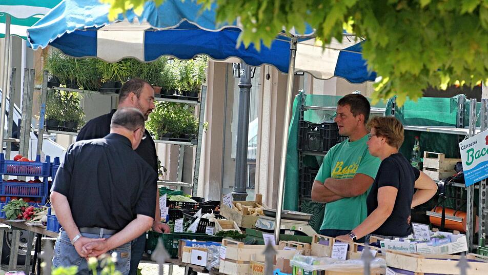 Auch der Bauernmarkt fehlte am Freitagvormittag nicht, Rund um den Neptunbrunnen am Marktplatz boten Direktvermarkter aus der Region ihre Delikatessen feil, eine Gärtnerei wartete mit allem auf, was das Gärtnerherz begehrt. Wieder, wie in den Vorjahren auch, war der Kirchweihtanz in der Städtischen Turnhalle ein Publikumsmagnet.