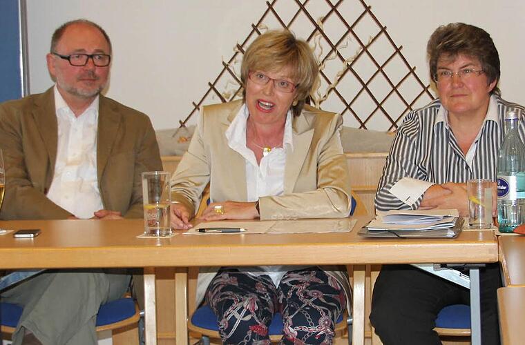 Barbara Baumbach (Mitt) will für die CSU Bürgermeisterin von Ebern werden. Links: Bürgermeister Robert Herrmann, rechts Ortsvorsitzende Gabi Rögner.Fotos: Ralf Kestel