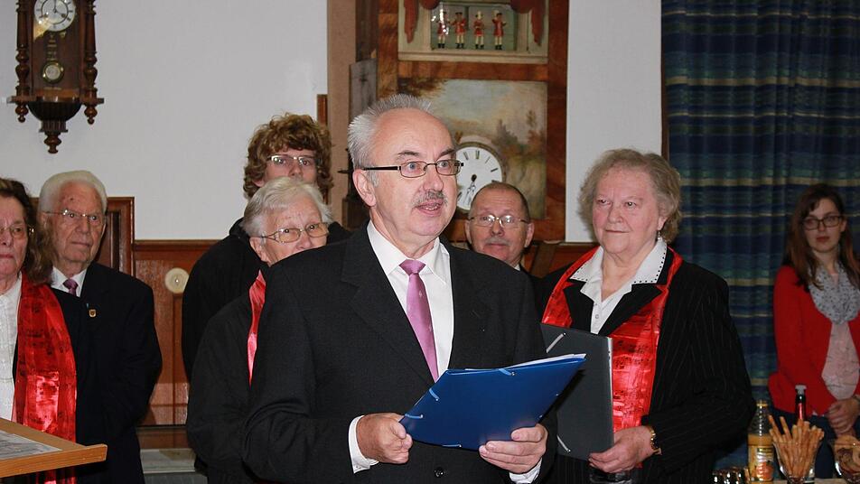Dennoch wollte der Gesangverein sein Jubiläum feiern. Und so entstand in Zusammenarbeit mit dem Bürgerverein eine Ausstellung im Heimatmuseum, in der die Geschichte des Vereins dokumentiert wird. "Es gab Höhen und Tiefen in dieser Vereinsgeschichte", berichtete Gesangvereinsvorsitzender Peter Müller am Sonntag bei der Eröffnung der Ausstellung. "Absoluter Höhepunkt war wohl am 9. Mai 1976 die Verleihung der Zelter-Plakette und der Pro-Musica Plakette in Bamberg."