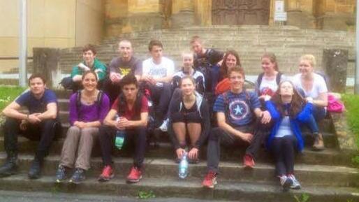 Wallfahrt zur Probe Eine dieser Herausforderungen war das Probepilgern nach Vierzehnheiligen, welches eine Tagesetappe simulieren sollte. Um den gewünschten Effekt zu erreichen, trugen die Schüler zusätzlich Gewichte von Sieben Kilo in ihrem Rucksack. ,,Die Gewichte machten den Weg zwar bedeutend anstrengender, aber das Gefühl, sein Ziel erreicht zu haben, machte die ganzen Strapazen wett‘‘, meint Fabian Busch, der den Trip vorbereitet hatte. Die Wanderschuhe haben die Jugendlichen so zumindest schon einmal eingelaufen.