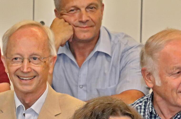 Landrat Wilhelm Schneider, wohl der Prominenteste unter den Ehemaligen, zumindest im hiesigem Bereich, stellte seinen ehemaligen Mitschülern die Pläne für den Neubau des Gymnasiums