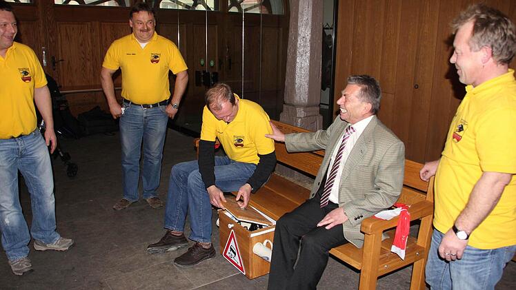 Das soziale Engagement stellte auch sein Stellvertreter Mario Winkelmann heraus. "Jeder konnte zu Dir auch mit seinen persönlichen Problemen kommen und fand immer ein offenes Ohr." So hatten die Bauhofkollegen dem Chef zum Abschied auch ein Rentnerbänkla mit Raffinesse gezimmert.