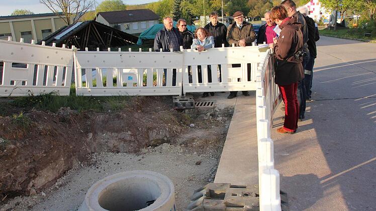 Stabiles Rohr im Rohr Bei einem Ortstermin in Bischwind zeigten Vertreter der Fachfirma aus Alzey, wie die Kanalsanierung mit Glasfasermatten funktioniert.