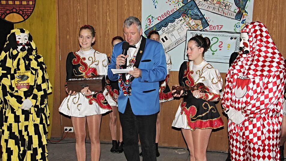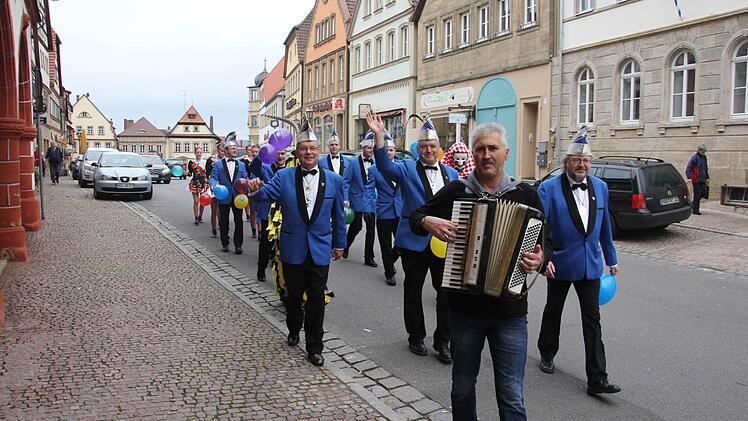 Ein "Schunkler" mit Quetschenspieler Stefan Wolfschmitt und der Aufforderung von Eberhard Wohl "Steigen sie mit ein in die Eberner närrische Zeitreise" fand der Faschingsauftakt in der Rathaushalle sein Ende.