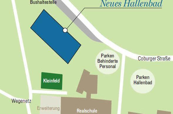 Dem Eberner Stadtrat wurden erstmals Pläne für das neue Hallenbad vorgestellt. Durch den Neubau auf der Wiese zwischen Realschule und Coburger Straße muss das Kunstrasen-Minispielfeld verschoben werden.