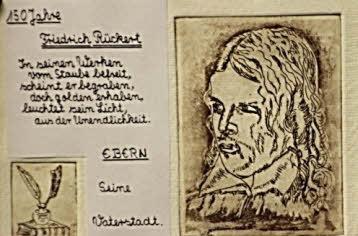 1821, als sich Rückert in Coburg zur Heirat anmeldete, seien die Stadtväter von Ebern aufgewacht. "Sie haben gemerkt, welch bunter Vogel ihnen durchs Gitter ging und ihm umgehend das Bürgerrecht angeboten, aber eine Antwort von Rückert auf das Angebot ist nicht bekannt."