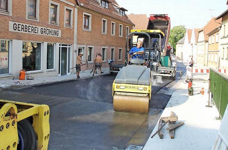 In diesem Anfang steckt ein Ende: Am Donnerstagmorgen bekam die Neubrückentostraße eine neue Tragschicht, womit der Abschluss der Umgestaltung eingeläutet wird. Seit Mitte vergangenen Jahres lebten die Anwohner mit Baustellenlärm, Teil- und Vollsperrungen. Sorgsam wurde jeder Handgriff der Baukolonne aus Sonneberg von Nachbarn überwacht.
