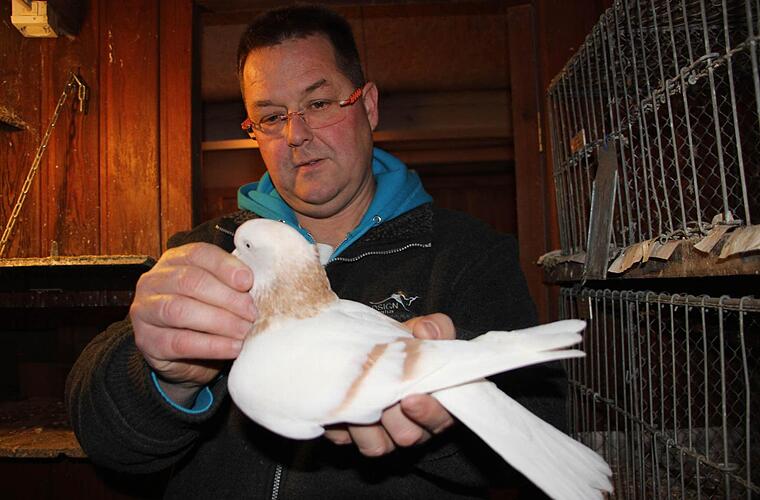 Der gelernte Fleischer züchtet Tauben und Hühner, seit er sieben Jahre alt ist. " Mein Großvater und mein Vater haben gezüchtet und mein Sohn ist auch schon dabei." Sohnemann Max ist elf Jahre alt und hat bereits eigene Tauben in den Stallungen sitzen. Auch Ehefrau Sabine trägt das Hobby mit. Selbst Familienhund Lola hat die Vögel gern und verhält sich in Gegenwart des Federviehs vorbildlich.