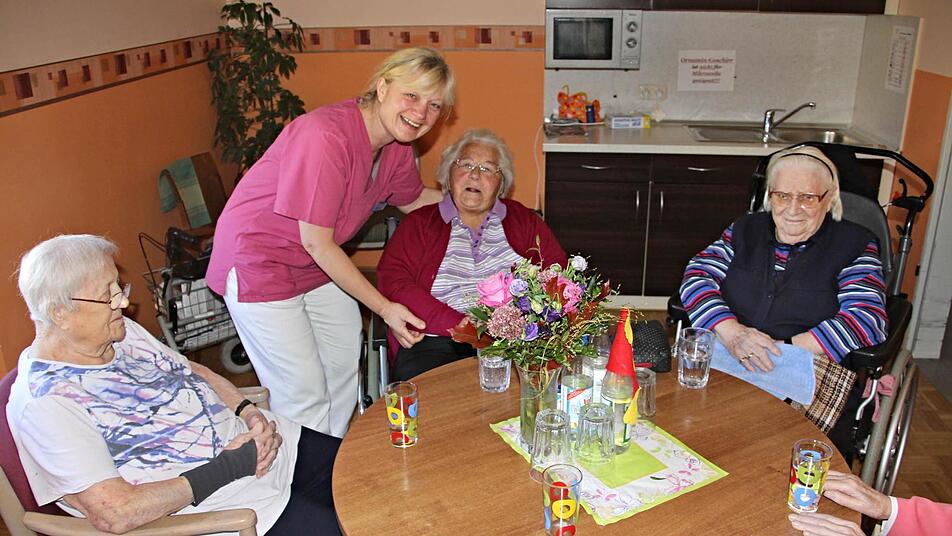 Die 51-ährige Ilse Ultsch ist seit 34 Jahren in der Pflege tätig, davon 23 Jahre im Seniorenheim "St. Elisabeth" in Ebern. Als sie durch den von ihr geführten Wohnbereich geht, winken ihr einige der Seniorinnen freudig zu. Besonders angetan von ihr ist die 91-jährige Erna Dill. "Sie ist eine ganz Liebe", sagt die Senioren und nickt Ilse Ultsch freundlich zu. Erna Dill wohnt seit sieben Jahren im Seniorenzentrum St. Elisabeth in Ebern.