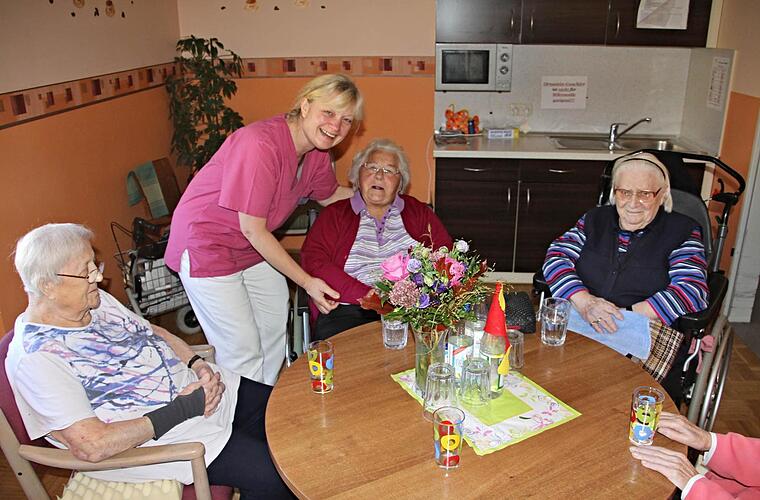 "Ich kann nicht klagen, es ist alles in Ordnung hier", sagt Seniorin Erna Dill, die mit ihren 91 Jahren eine gute Gesprächspartnerin ist. Ihr Blick sucht Ilse Ultsch: "Die ist lieb und nett und auch die anderen, die sich um mich kümmern." Gerne spielt die Seniorin noch Karten, meist mit einem männlichen Mitbewohner.