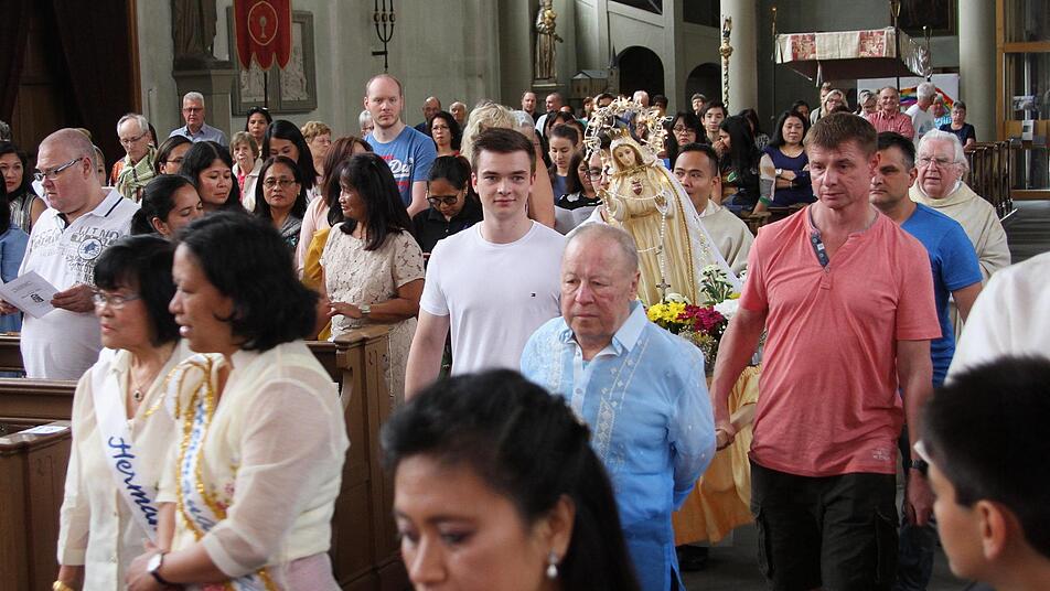 So war es auch am Samstag in Eltmann. Nachdem die Filipinos aus ihren Heimatorten im Landkreis, aus Franken und bis aus Stuttgart eingetroffen waren, begann das Fest mit dem Rosenkranz in der Kirche. Dann stand der feierliche deutsch-philippinische Gottesdienst in der Stadtpfarrkirche im Mittelpunkt unter dem Motto "In honor of the blessed virgin Mary", den der "Jugendchor Cantarella" mit Leiterin Sonja Wissmüller mit dem Lied "Here we are together in difference, here we are together in peace, here we are to praise the Lord, united in faith" begleitete.