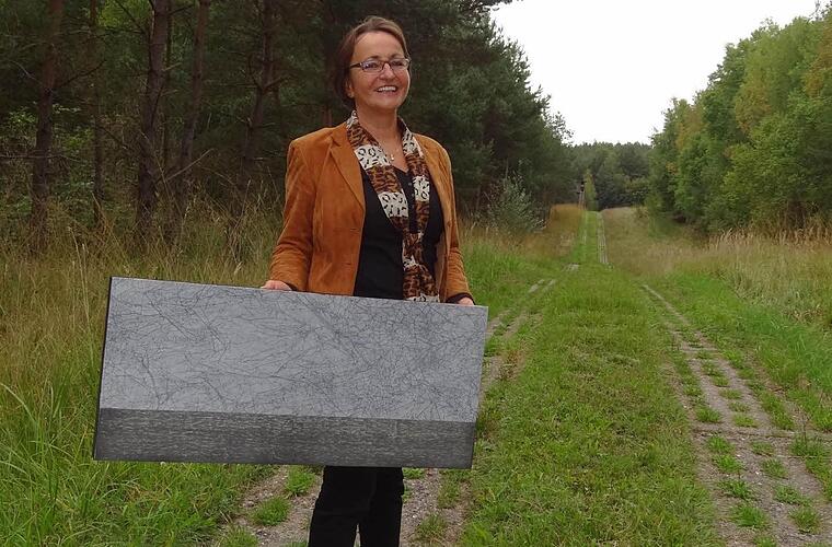Mit bearbeiteten Schleifpapier und einer ganz eigenen Technik in der experimentellen Malerei hat sie ihren Blick nach Drüben in den Osten künstlerisch festgehalten. Das ist ihr persönlicher Weg, sich der Vergangenheit der deutsch-deutschen Landesgrenze zu nähern. Die bildende Kunst ist zu ihrer Sprache geworden, derer sie sich gerne bedient.