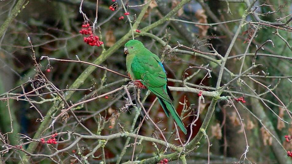 Ein australischer Königssittich labte sich an den Vogelbeeren in ihrem Garten. Die und die im Nachbarsgarten sind jetzt aufgefuttert, und der farbenprächtige Vogel kam erst mal nicht wieder, wie die Frau aus Krum am Freitagmorgen unserer Zeitung berichtete.