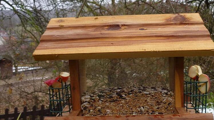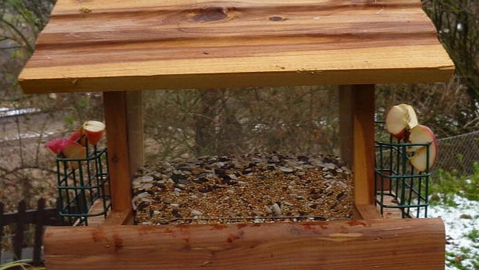 Da kein Fachmann in Sicht ist, tut sie also, was sie tun kann: Sie hat Äpfel in den Baum gehängt und Futter für Großsittiche gekauft. Bei den stürmischen Böen am Donnerstag musste Monica Geissler-Gumpert das Vogelhäuschen erst mal abbauen, es tanzte in den Zweigen; am Freitag kam es wieder in den Baum.