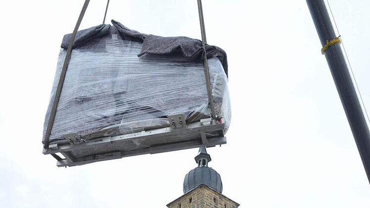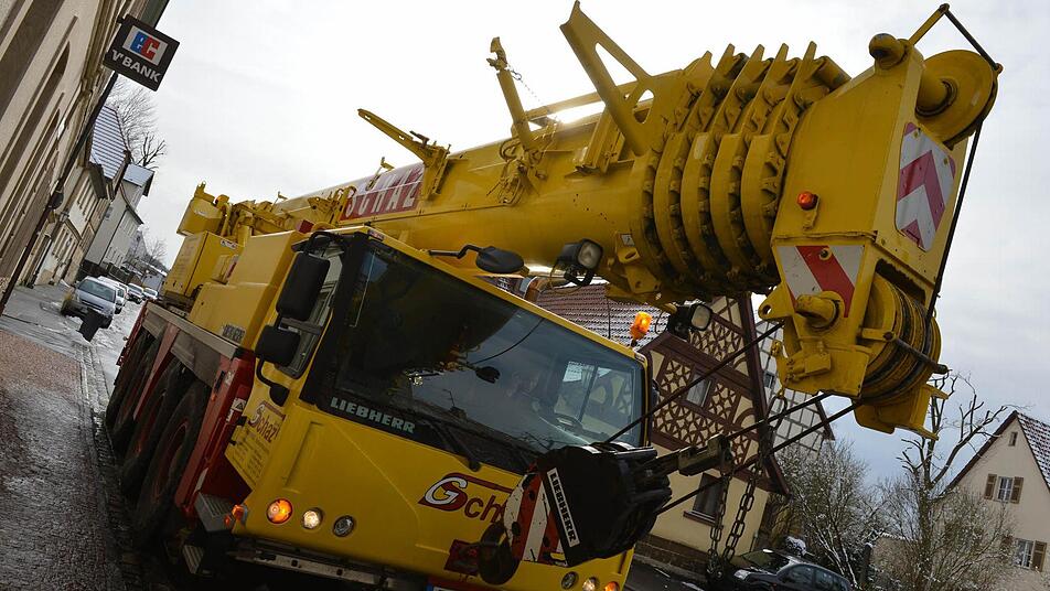 Einer logistischen Meisterleistung glich das Umsetzen eines Konzertflügels am Mittwoch in Ebern. Ein Spezialunternehmen aus Herzogenaurach hievte das acht Zentner schwere Instrument mit Hilfe eines Kranes von der Raiffeisenbank in Richtung Musikschule.