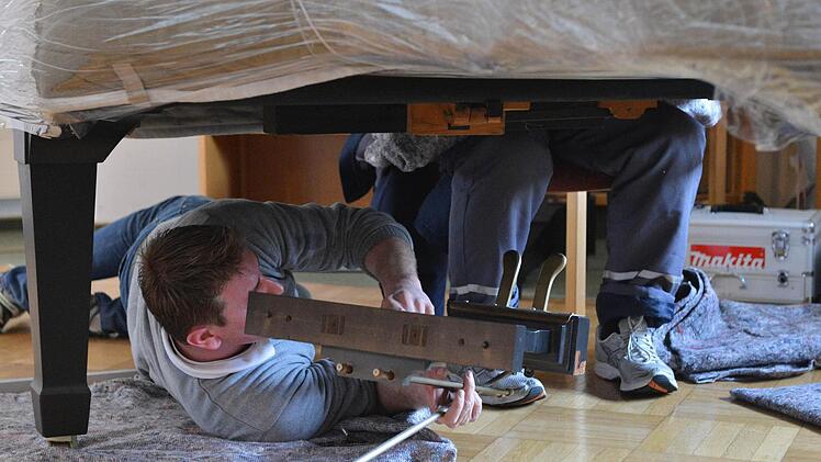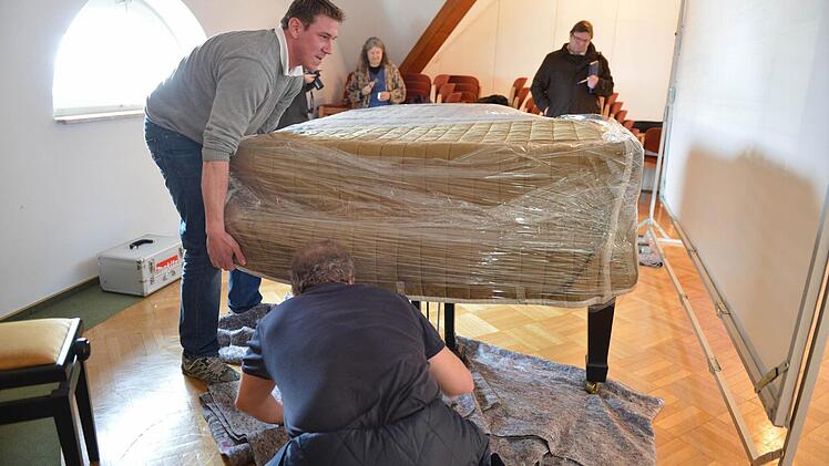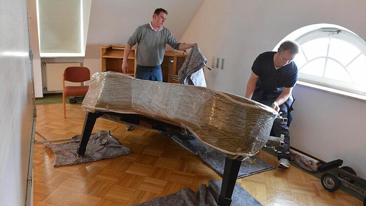 So holte sich die Musikschule fachmännischen Rat: Christian und Heinz Haußner, Eigentümer einer Spezialfirma aus Herzogenaurach, bewegen solche Instrumente mehrmals am Tag. Dies passiert mitunter auch für den Starpianisten Lang Lang oder renommierte Musikhäuser in Nürnberg und Bamberg, erzählt der Geschäftsführer mit hochrotem Kopf.