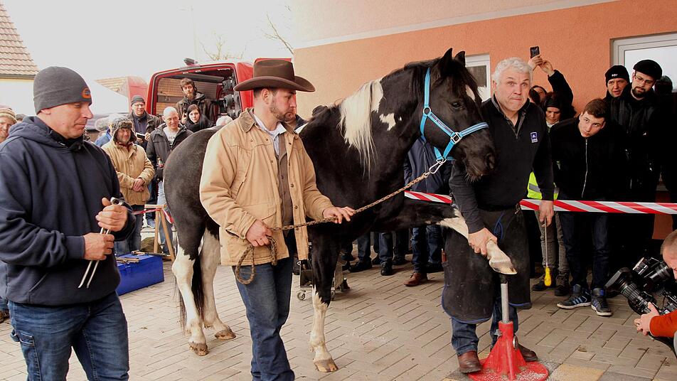 Die Zuschauer verfolgten gebannt jeden Handgriff, ein Dolmetscher übersetzte die Informationen von Grant Moon. Unter den Hufschmieden befanden sich auch Frauen. Wie Janice Heller aus Würzburg. Sie stammt aus Berlin und ritt auf der Trabrennbahn Karlshorst. "Dort schon fand ich die Arbeit toll, bin dann umgezogen und fand meinen Meister in Florian Dertinger in Giebelstadt. Bei ihm habe in eineinhalb Jahre in der Barhufbearbeitung gearbeitet und anschließend das Beschlagen gelernt. Da kommt man dann den Blick für das richtige Beschlagen. Danach muss man zwei Jahre beim Schmied in der Praxis mitfahren und kann sich dann für die Prüfung anmelden." So ist Janice Heller mit dem Schmiedewagen unterwegs bei Reitvereinen und Privatpersonen in einem Umkreis von 80 Kilometern rund um Würzburg.