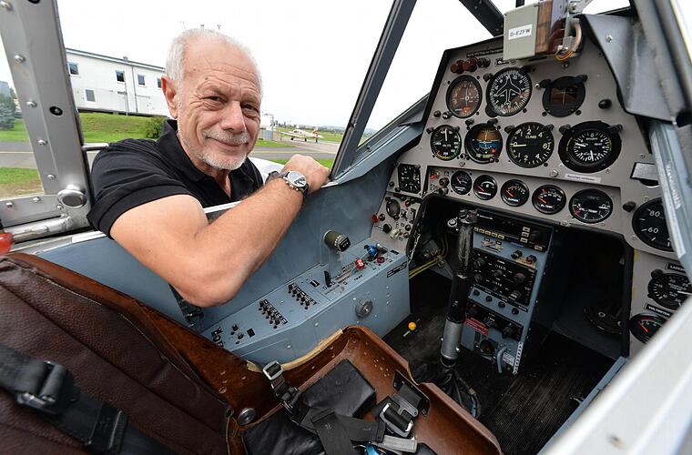 Zeit zum Genießen bleibt Alles an Hanusa ist auf Fliegen eingestellt: Während er in aller Fluglehrer-Seelenruhe die Besonderheit des hydraulisch elektrischen Fahrwerks am Flügel oder den Neun-Sternmotors erklärt, liegt in seiner Hand während des ganzen Gesprächs eine Pilotenbrille mit tiefschwarzen Gläsern. Bevor er als Fluglehrer gearbeitet hat, war er über zehn Jahre bei der Luftwaffe aktiv. In dieser Zeit hat er sich nach und nach die Fingerfertigkeit für das Nachbauen der 1000 Kilogramm schweren Flugmaschine angeeignet.