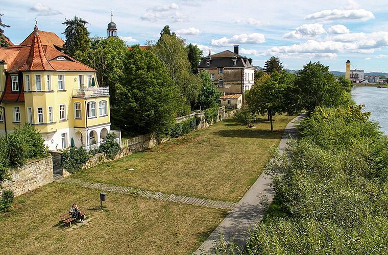 Entlang der Stadtmauer geht es anschließend über die Hirtengasse weiter zum Unteren Tor. Wer nun Lust auf einen abendlichen Snack unter freiem Himmel hat, deckt sich beim Bäcker, Metzger oder in einem der zentralen Supermärkte mit Proviant ein. Die Uferpromenade unterhalb des Gries-Parkplatzes bietet sich für eine Verschnaufpause an, bevor es entlang des Mainufers bis zum Haßfurter Hafen weitergeht. Auf dem Weg dorthin lassen sich die mittlerweile schmerzenden Füße auch mal ins kühle Wasser stecken.