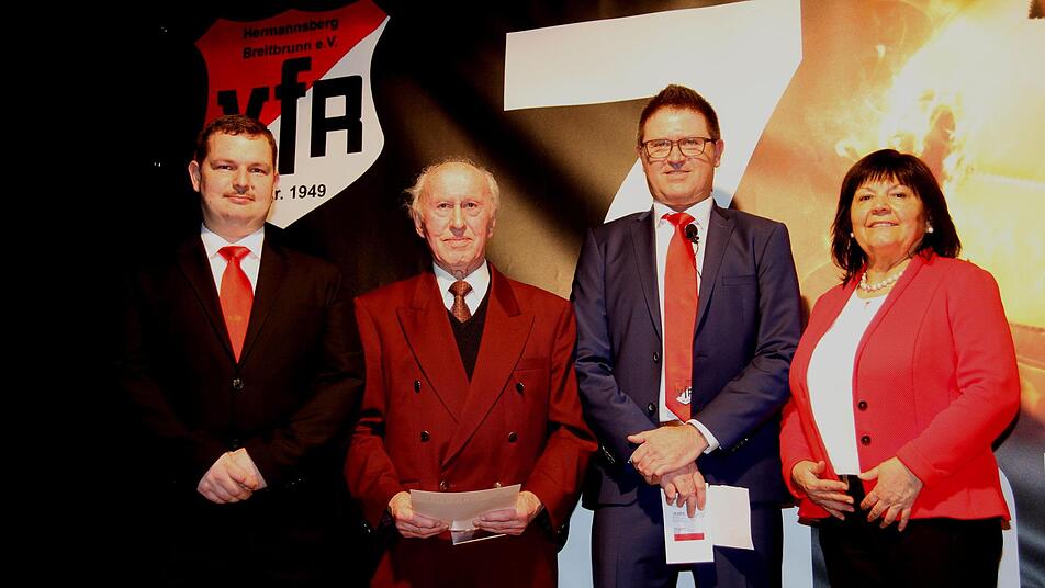 "Der VfR Hermannsberg-Breitbrunn ist in seinem Jubiläumsjahr gut aufgestellt für die Zukunft." Dies attestierte BFV-Kreisvorsitzender und Kreisspielleiter Gottfried Bindrim dem Verein beim Festkommers anlässlich des 70-jährigen Bestehens im Gemeindezentrum vor rund 250 Gästen. Marco Benz, Vorstand für Öffentlichkeitsarbeit, hieß in den reihend er Gäste vor allem Gründungsmitglied Simon Baum willkommen.