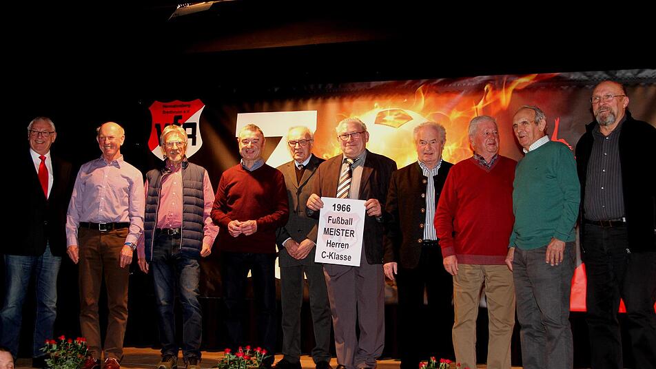 Moderator Jürgen Schmitt führte locker und kurzweilig durch den Abend. Beim Blick in die Chronik bat er immer wieder die entsprechenden Meistermannschaften auf die Bühne, die in Interviews und Wortbeiträgen einen eindrucksvollen Blick in das Vereinsgeschehen ermöglichten. Den Anfang machte die legendäre erste Meistermannschaft von 1966. Aber auch die Meisterteams aus 1981, 1991, 2002, 2008 und 2014 kamen nicht zu kurz. Jürgen Schmitt stellte auch die vielen gesellschaftlichen Veranstaltungen heraus. Stellvertretend für all die verdienten Aktivisten nannte er den inzwischen verstorbenen Ehrenvorsitzenden Andreas Hoch, Ehrenmitglied Norbert Schramm sowie Ludwig Bühl, der für 40-jährige Tätigkeit als Schiedsrichter geehrt wurde.