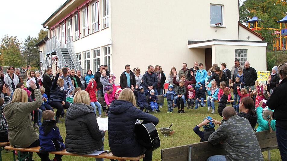 Kindergartenleiterin Daniela Dütsch dankte allen, die mitgeholfen hatten, dieses Familienfest zu organisieren. Elternbeiratsvorsitzende Anja Espig gab für die Kinder und Eltern der großen Freude darüber Ausdruck, dass die Außenanlage so schön gestaltet wurde und nun wieder voll den Kindern zur Verfügung stehe. Sie dankte allen Helfern, die ihren Teil zum Gelingen beigetragen hätten. Aber auch während des Kindergartenjahres gebe es immer wieder zahlreiche freiwillige Helfer, die für die Wallburgweihnacht Lebkuchen oder Plätzchen backen oder auch beim großen Sommerfest mithelfen.