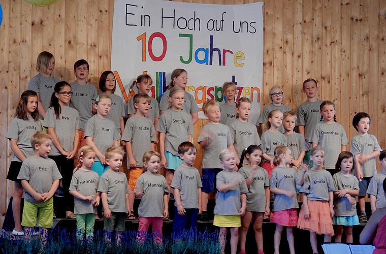 Von Stettfeld kamen dann die Kids vom Kinderchor "Simsalasing" unter ihrer Dirigentin Viola Zettelmeier und wiesen gleich in ihrem ersten Song auf ihre eigene Bedeutung