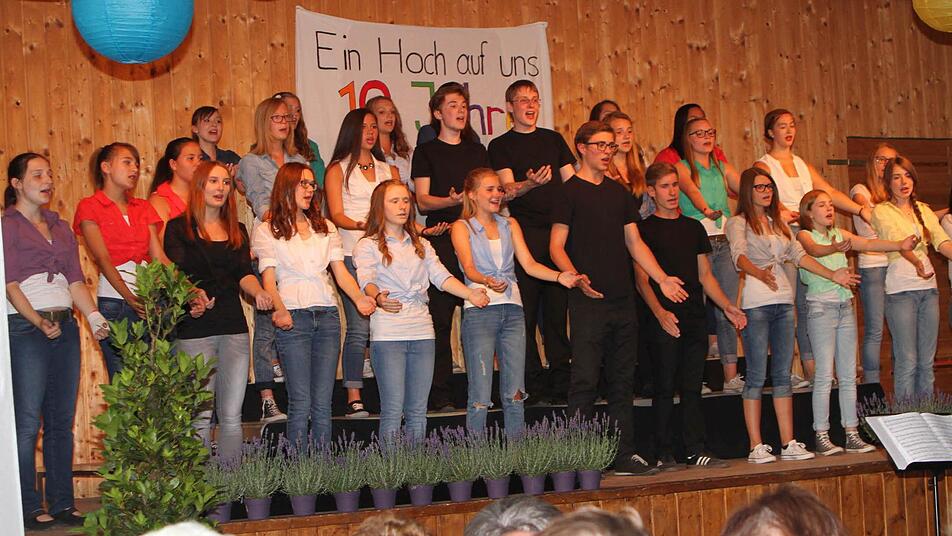 An schwierigere Partituren und mehrstimmige Chöre wagt sich inzwischen schon der Jugendchor "Cantarella" von der Sängerlust Eltmann heran. Auf viel Beifall stießen die Medleys aus den Musicals "Grease" und "Dirty Dancing". Dem wollten die Kleinsten vom Jubiläumschor "Wallburg-Spatzen", nicht nachstehen und sangen die bekannte Hymne "Ein Hoch auf uns" von Andreas Bourani sowie den Song über "Peter Pan".