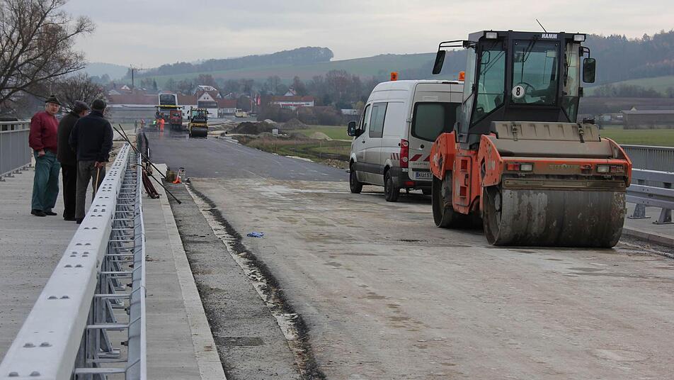 "Da bleiben doch ganz schöne Kanten, wenn die Feinschicht nicht draufkommt", wundern sich die Senioren auf der Itzbrücke, die die Grenze zwischen Ober- und Unterfranken markiert. Die Flussbrücke wurde ebenso neu gebaut wie zwei Flutbrücken. "Die drei Bauwerke sind allesamt fertig und der Grund dafür, wieso wir für einen ein Kilometer langen Straßenabschnitt 2,7 Millionen Euro aufwenden mussten. Unsere größte Maßnahme in diesem Jahr im Zuständigkeitsbereich unserer Behörde", erklärt Baudirektor Eisgruber.
