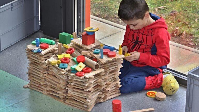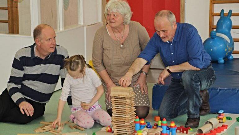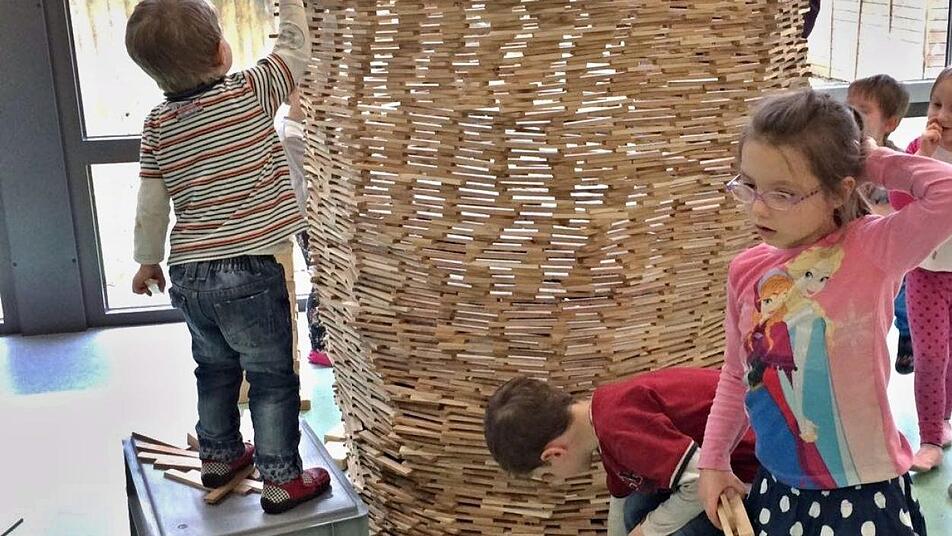 Die Kinder konnten während dieser Woche gruppenweise mit etwa 10 000 Holz-Bausteinen in verschiedenen Formen und Farben bauen und dabei gemeinsam etwas erschaffen. "Sie durften die Dinge selbst in die Hand nehmen ausprobieren, aber auch gruppenübergreifend Bauwerke erstellen, Straßen und Wege miteinander vernetzen", sagt Ilse Herold, die stellvertretende Leiterin des Kindergartens. Die Philosophie dahinter ist, wie Spiel- und Theatertrainer Michael Keim und Bernd Bullnheimer, Unternehmensberater und Coach und selbst Vater eines Kindes im "Regenbogen" sagten, Menschen zu befähigten aufeinander zuzugehen, miteinander zu gestalten und spielerisch Grenzen überwinden.