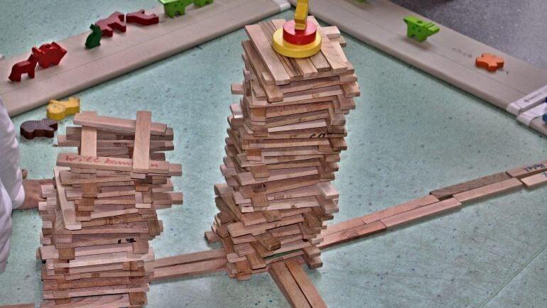 Es regte sich was am Mittwochvormittag im städtischen Kindergarten "Regenbogen". Gleich nach dem Eingang überall Kinder am Boden, die mit Bauklötzen und Holzspielzeug werkelten. Sämtliche Gruppenräume und auch die Turnhalle waren in Beschlag genommen. Was durch Kinderhände entstand, zeugte von deren Kreativität. Es war zu erkennen, dass die Kinder genaue Vorstellungen hatten wie eine Stadt auszusehen hat.