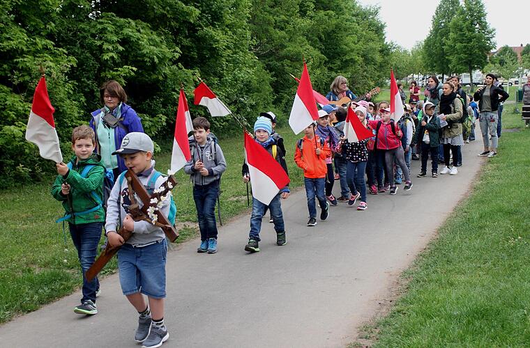 "Erde - manche sagen, das ist ja nur Dreck. Aber das stimmt nicht. Erde ist etwas ganz Schönes, ganz Kostbares. Dieses Kostbare wollen wir uns jetzt einmal genauer anschauen." Mit dieser Aufforderung von Gemeindereferentin und Religionspädagogin Isabella Friedrich machten sich 80 Buben und Mädchen aus der Johann-Baptist-Graser-Grundschule und den vier Kindergärten der Stadt Eltmann auf ihre "Kinderwallfahrt" zum Wallfahrtsort Maria