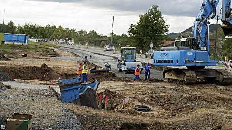 Hochbetrieb herrschte auf der Baustelle in Limbach. 36 Bauplätze wird das Baugebiet "Sandwühl" bieten, die Erschließungsarbeiten laufen gemäß Zeitplan und sollen Ende April 2013 abgeschlossen sein. Die ersten Bauinteressenten stehen in den Startlöchern.