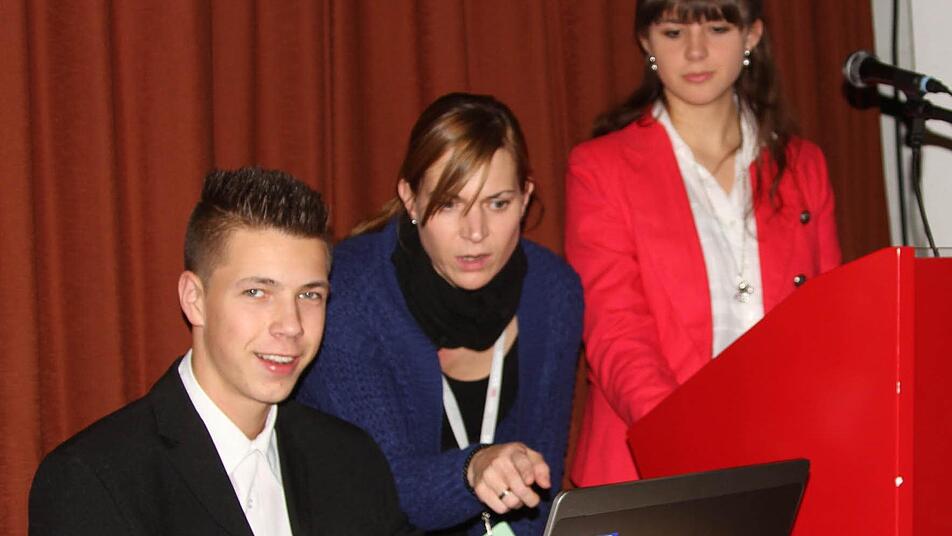 Praktiker mit im Boot Die Neuntklässler sind nicht alleine: Patrik Lediger stellte als Wirtschaftspaten Gerald Leithner, Chef eines Mediengestaltungsunternehmens in Ebelsbach, und Thomas Pfaff, Inhaber einer Druckerei, vor.