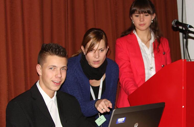Vorstandsvorsitzender Patrik Lediger hieß den Eltmanner Bürgermeister Michael Ziegler willkommen. Patrik erklärte, die Firma sei als Juniorunternehmen gegründet worden und arbeite nach offiziellen Vorgaben.