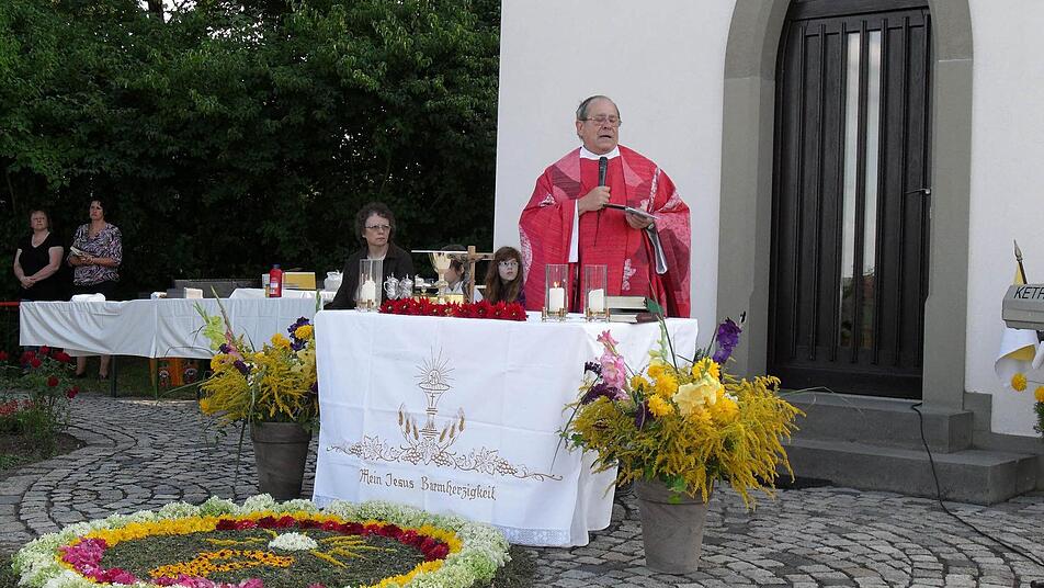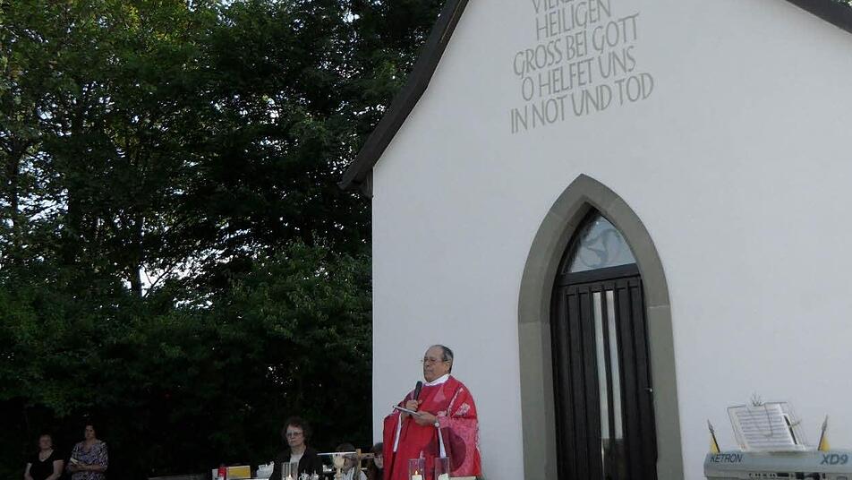 Ein besonderes Erlebnis war für Eltmanner wie Eschenbacher Gläubige die Cyriakus-Wallfahrt mit dem Freiluftgottesdienst an der Nothelfer-Kapelle hoch über Eschenbach. Der frühere Eltmanner Stadtpfarrer Siegfried Vogt führte die Wallfahrer aus der Pfarrei Eltmann von der Stadtpfarrkirche aus die Schlosssteige hinauf.