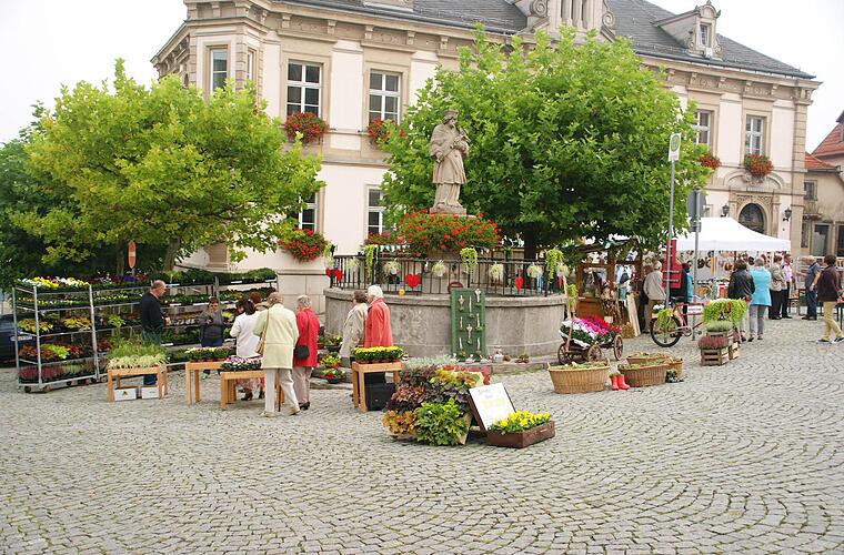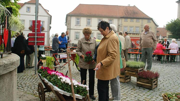 Der Obst- und Gartenvbauverein Eltmann belebt die Stadtmitte mit der Neuauflage eines Jubiläumsangebotes. Der Zuspruch zeigt, dass mit der Aktion ein Nerv getroffen worden ist. Pflanzen für den Herbst stehen jetzt hoch im Kurs.