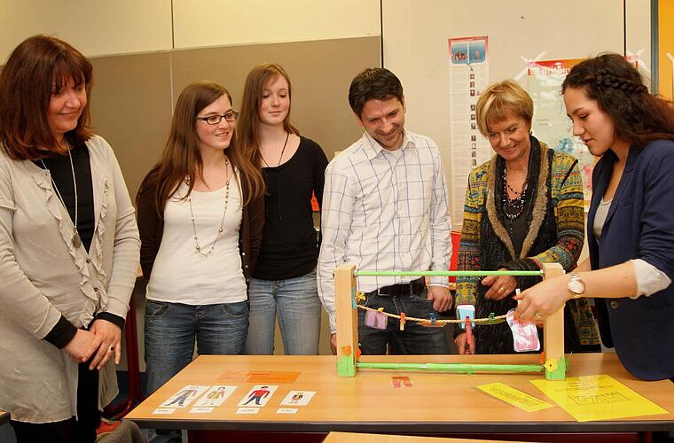 "Dazu passend haben die Schüler des Praxisseminars Lehrmaterialien erstellt, welche der unterstützenden Vorbereitung für den Englischunterricht dienen und es den Lehrkräften ermöglichen, die Lernerfolge vor dem Übertritt an weiterführende Schulen zu überprüfen", sagte Studienrat Benjamin Götzinger, der die Arbeit der Schülergruppe betreute. Die Gymnasiasten erarbeiteten ihre Materialien in enger Zusammenarbeit mit der Didaktikerin Daniela Glos von der Universität Würzburg und testeten ihr Stationentraining an den Grundschulen in Sylbach, Eltmann und Haßfurt. Verbesserungsvorschläge konnten so unmittelbar berücksichtigt werden. Außerdem bekamen die Gymnasiasten Rückmeldung von ihrer Zielgruppe, den Grundschülern.