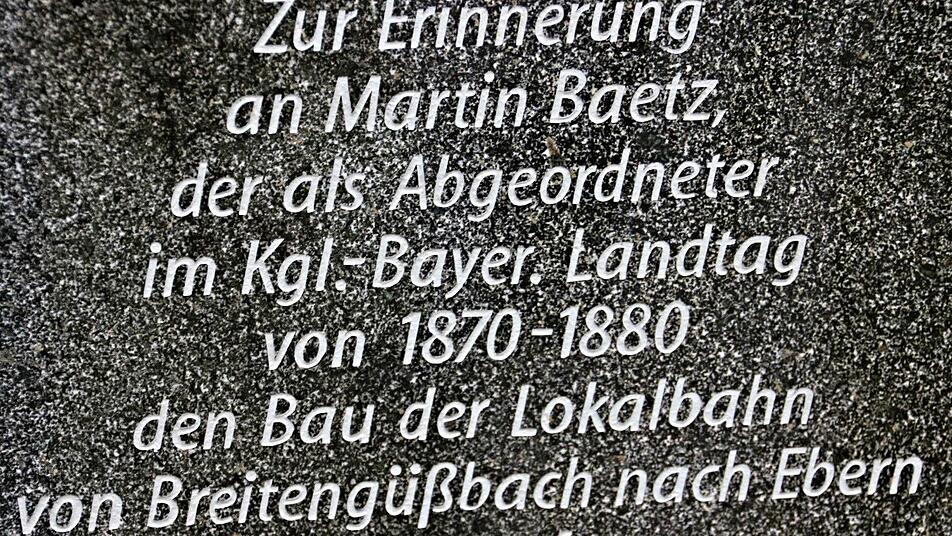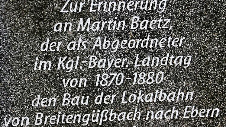 Mit der Enthüllung eines Gedenksteins für Martin Baetz ehrt die Stadt Ebern einen Kämpfer für die Eröffnung des Zugverkehrs durch den Baunachgrund zum Ende des 19. Jahrhunderts.